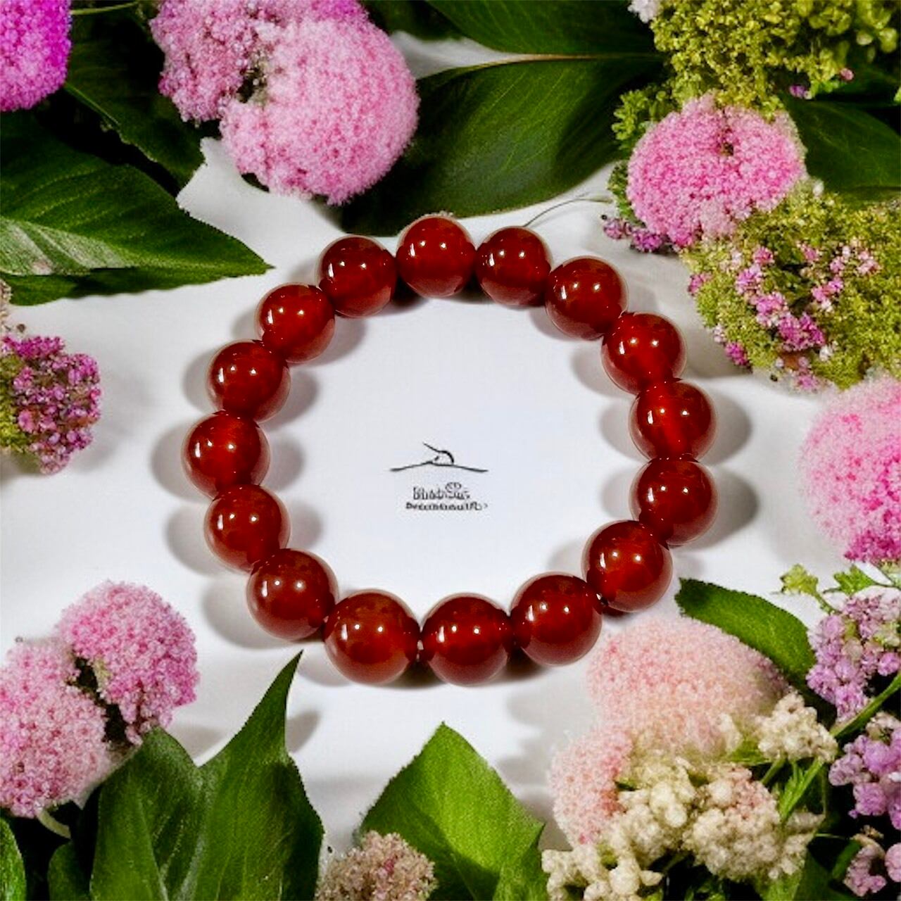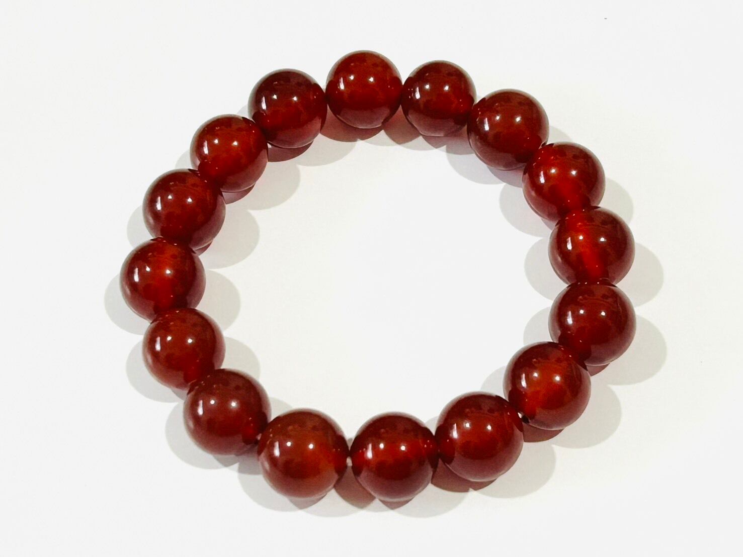 〇心身のエネルギーアップ!〇天然石ブレスレット!レッドメノウ 内径15.5㎝±5㎜ 珠12㎜