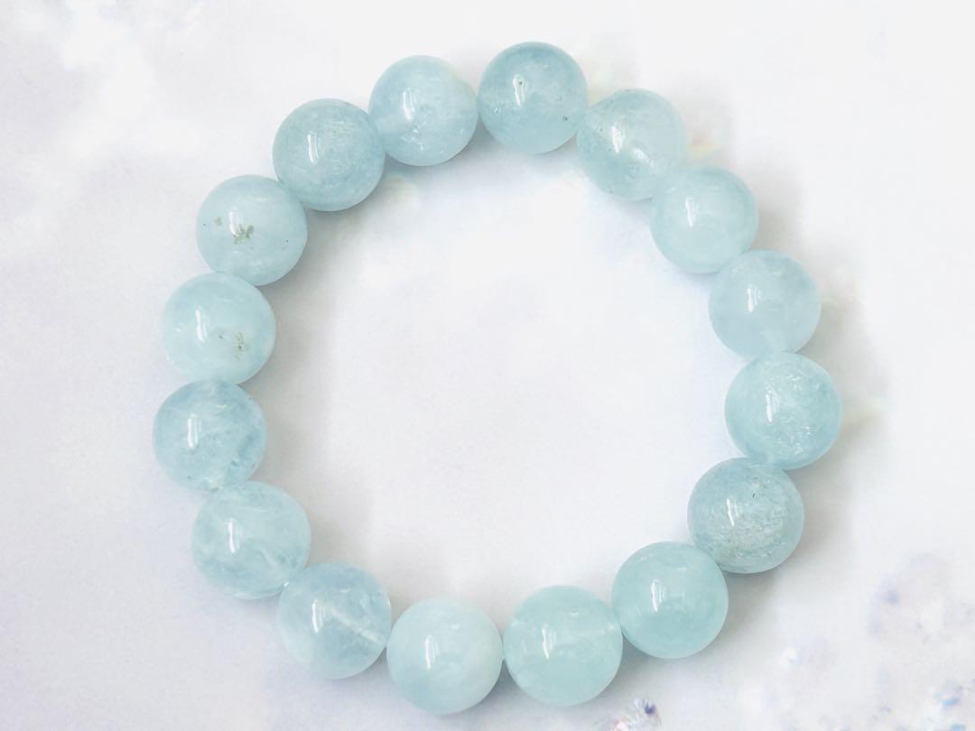 【3月の誕生石】アクアマリン 天然石ブレスレット 珠12mm 内径15.5㎝±5㎜