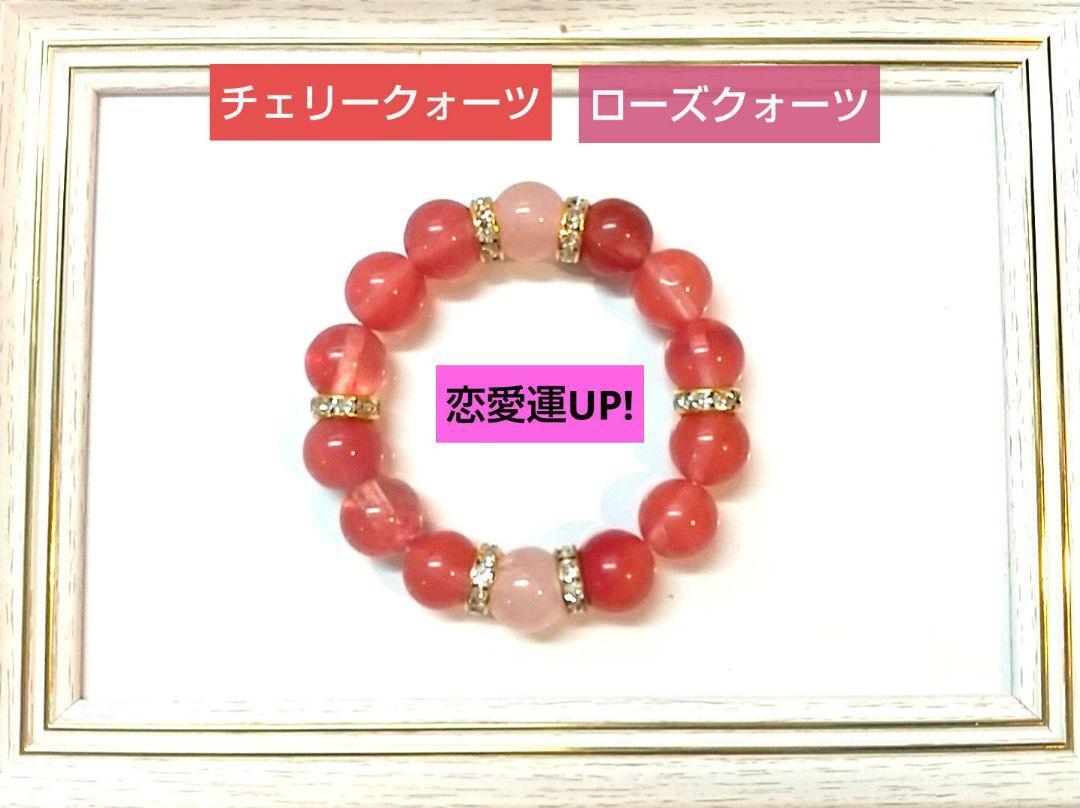 〇愛情運〇ローズクォーツとチェリークォーツ天然石ブレスレット パワーストーン